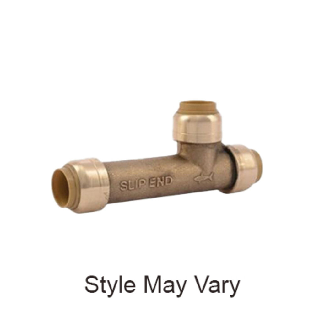 SharkBite® Slip Tee, Fitting/Connector Type: Tee, 1/2 in Nominal, Push-Fit, 200 psi, Brass, Natural Brass/Chrome Plated, 200 deg F, Import