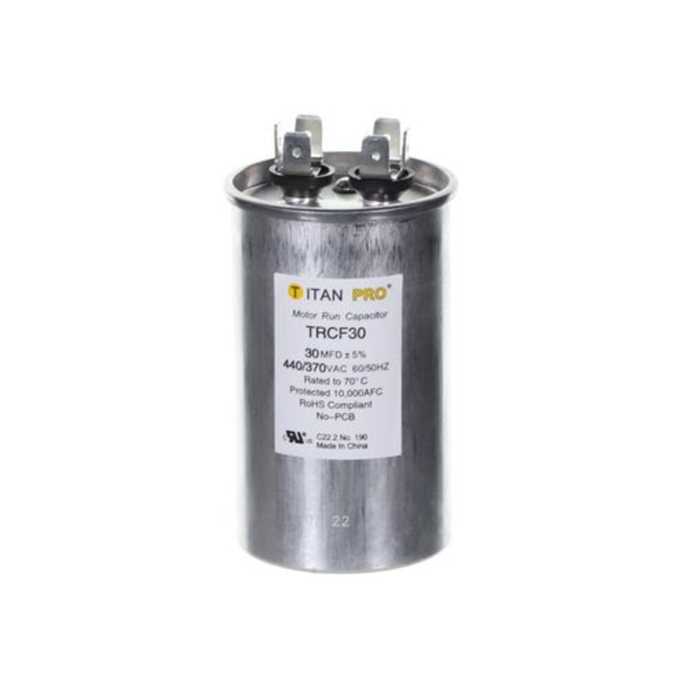 - Capacitance1 uFDomestic / ImportImportVoltage Rating440/370 vColorSilverDiameter1.97 inDimensions2.25 in W x 4 in H x 2.25 in DHertz50_60 HzManufacturerDiversiTech CorporationManufacturer #TRCF30MaterialMetalMDF Rating30SeriesPRO 370Size1.97 x 3.35 inSpecificationsBoth Ducted and DuctlessSub-BrandTitanWeight0.4 lbs