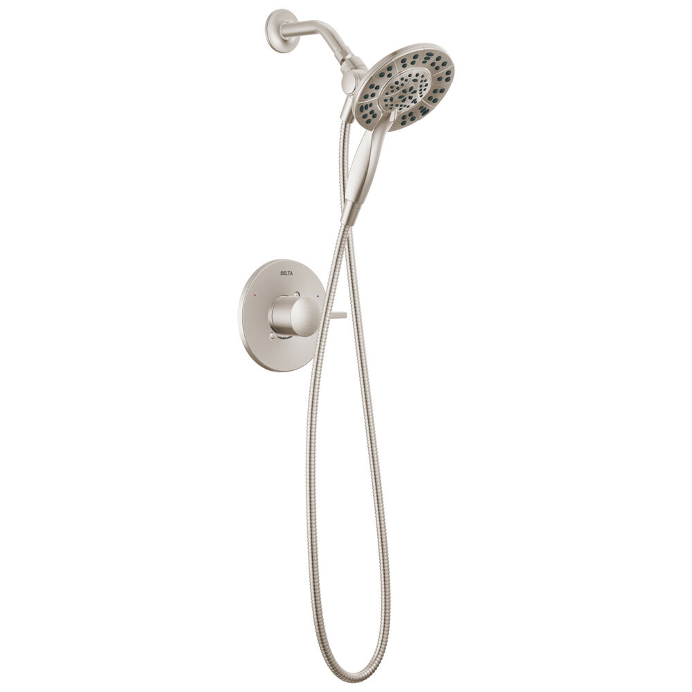 - Inspired by modern architecture, the Albion™ Collection brings dimensional style to your bath with a soft touch of curves rooted in angular geometries. The Delta® In2ition® Two-in-One Shower features a detachable hand shower which can be used separately from or simultaneously with the shower head. This integrated dual-functionality gives you maximum flexibility without sacrificing warmth, as you can choose to have water streaming from the shower head only, the hand shower only or both the shower head and hand shower at once. SpotShield® Technology helps to keep your faucet or shower cleaner, longer by resisting water spots and fingerprints. The pause setting gives you ample space for shaving, lathering and other shower tasks, then easily restarts the water with the temperature where you left off. WaterSense® labeled faucets, showers and toilets use at least 20% less water than the industry standard — helping you save water without compromising performance. You can install with confidence, knowing Delta products are backed by our Lifetime Limited Warranty and highly-trained customer service team.