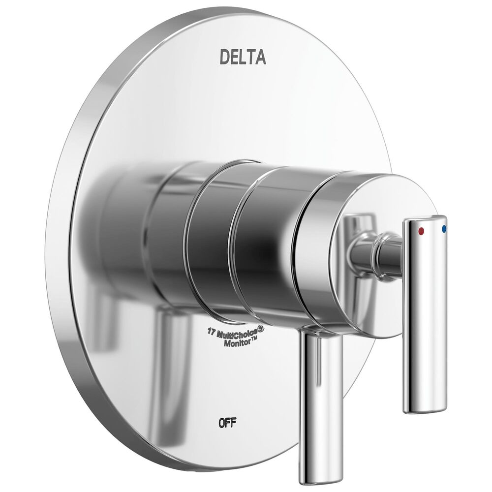 - DELTA® T17042, Valve Only Trim, Series: Monitor 17, Altado™ Collection, Valve Flow Rate 1.75 gpm, 4-5/16 in Spout Reach, 2-3/4 in Spout Height, 1 Handles, Lever Handle, 6-1/2 in Dia Trim, Cartridge, 80 psi Pressure, Wall Mounting, For Use With: Multichoice Universal Rough Valve Body, Zinc, Chrome Plated, Domestic
