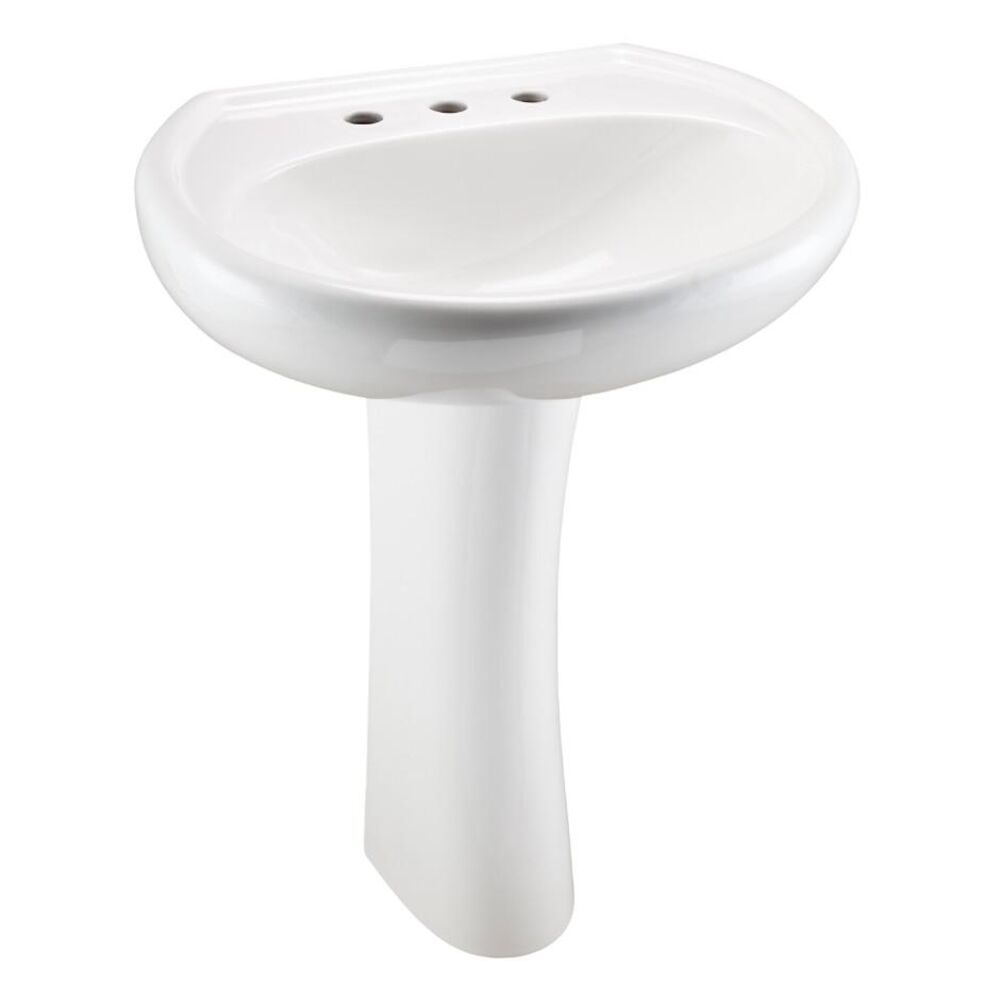 - Gerber®, G0022518, Bathroom Sink, Standard, Maxwell Collection, Round Shape, 20-1/2 in H x 25-1/2 in W x 14-3/8 in D Bowl, 8 Faucet Hole Spacing, 1 Basins, 34-5/8 in H x 25-1/2 in W x 20-1/2 in D Overall, Pedestal Mounting, Vitreous China, White, Import