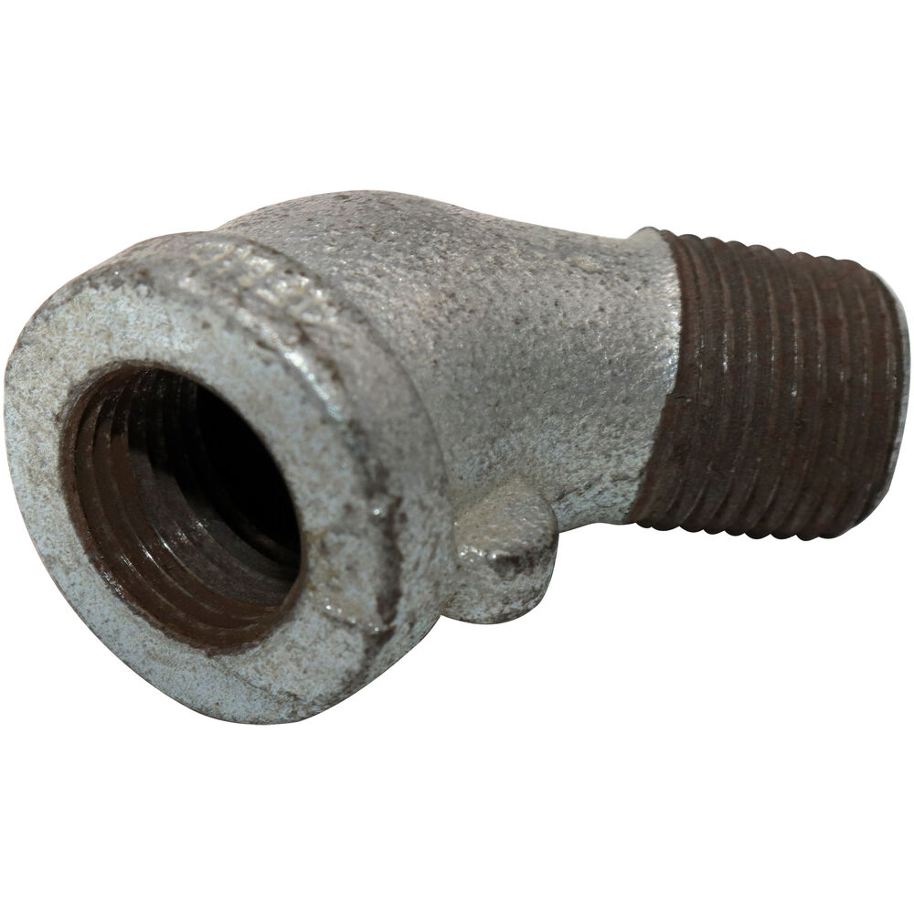 - Domestic / ImportImportEnd StyleFNPT x MNPTFinishGalvanizedFitting / Connector Type45 deg ElbowMaterialMalleable IronNominal Size3/8 inPressure Class150 LbManufacturerAnvil InternationalManufacturer #0811027002Pressure Rating300 psiSchedule RatingSCH 40/STDSeriesFIG 3104Temperature Rating-20 to 150 deg F