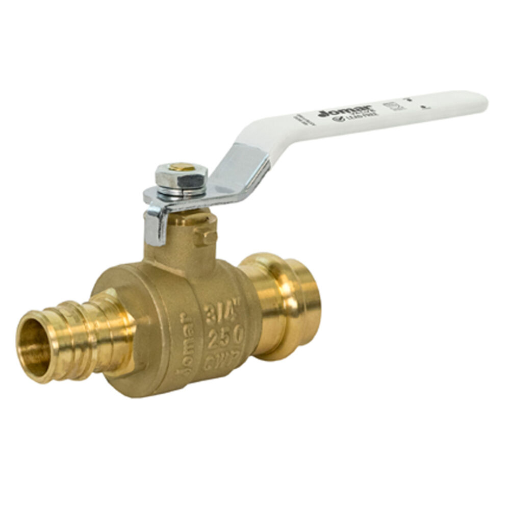 - Body MaterialLead Free BrassDomestic / ImportImportEnd StylePress x F1960 Cold Expansion PEXNominal Size3/4 inPort TypeStandardSoftgoods MaterialPTFE / EPDMBall MaterialStainless SteelHandle StyleLeverInlet to Outlet Length3.52 inManufacturerFirst Supply ApprovedPressure Rating250 psi WOGSeriesT-422G PRESS x EXPANSIONTemperature Rating200 deg FTop to Inlet Center2.09 inTrim Material305 Brass Stem and PTFE SeatType2-Piece