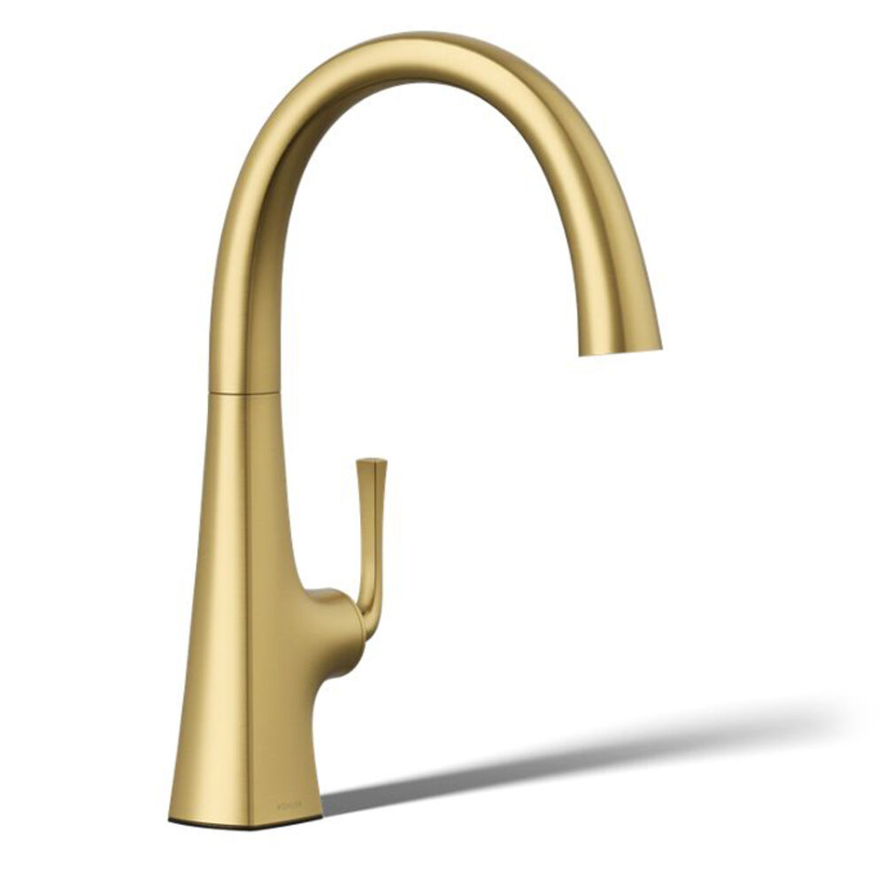 Kohler® Bar Sink Faucet, Series: 22065, Graze™ Collection, 1.5 gpm Flow Rate, High-Arch Swing Spout, 8-1/8 in Spout Reach, 8-9/16 in Spout Height, Lever Handle, 1 Handle, 1 Faucet Hole, 1-15/16 in Dia Faucet Hole, 3/8 in Connection, Compression Connection, 2-1/2 in Maximum Deck Thickness, Deck Mounting, Ceramic Disc, 13-3/4 in H Dimensions, Metal, Modern Brass