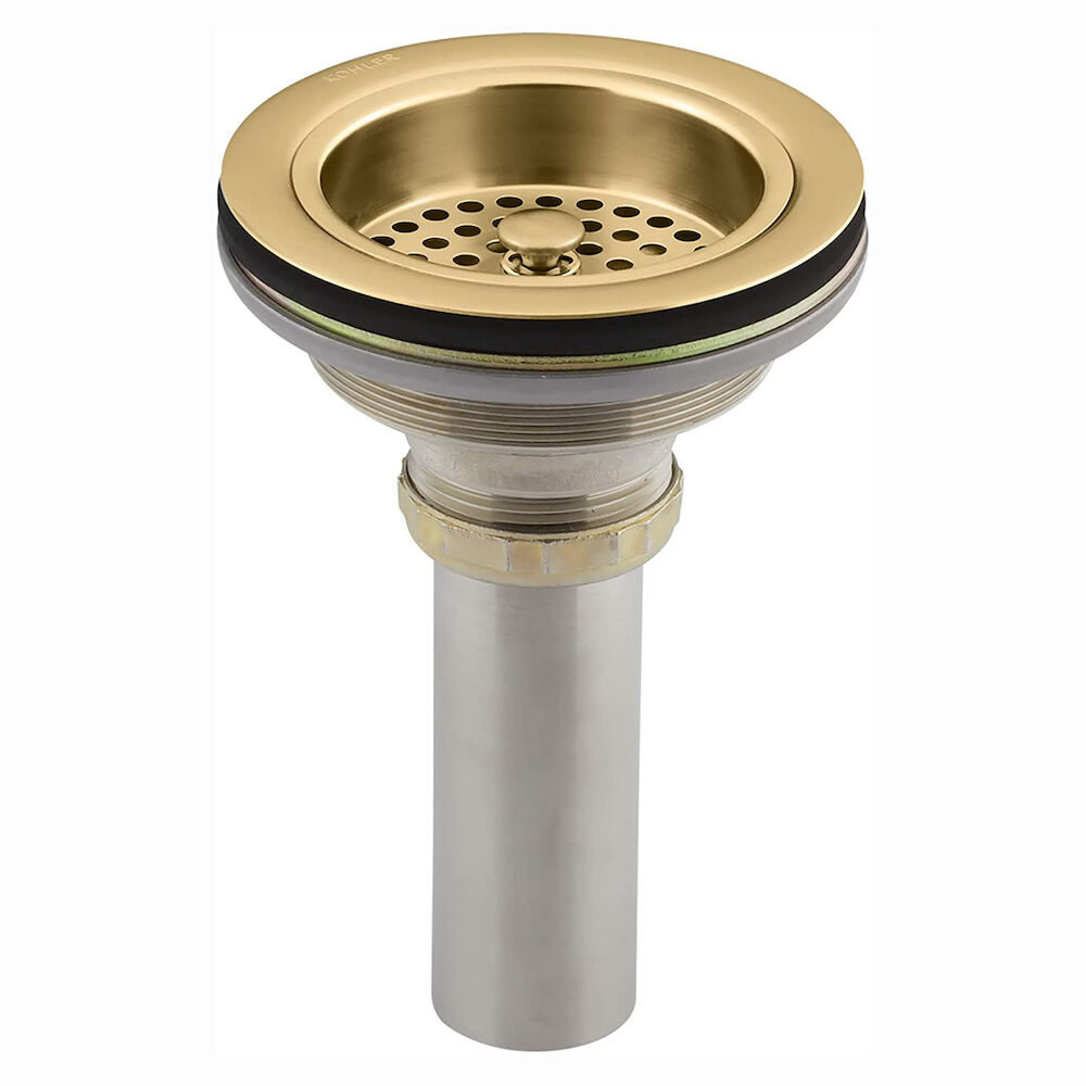 Kohler® Sink Drain and Strainer with Tailpiece, Series: 8801, DuoStrainer with Tailpiece® Vibrant® Collection, Brushed Modern Brass, 1-1/2 in OD x 4-1/2 in W x 7 in H Dimensions