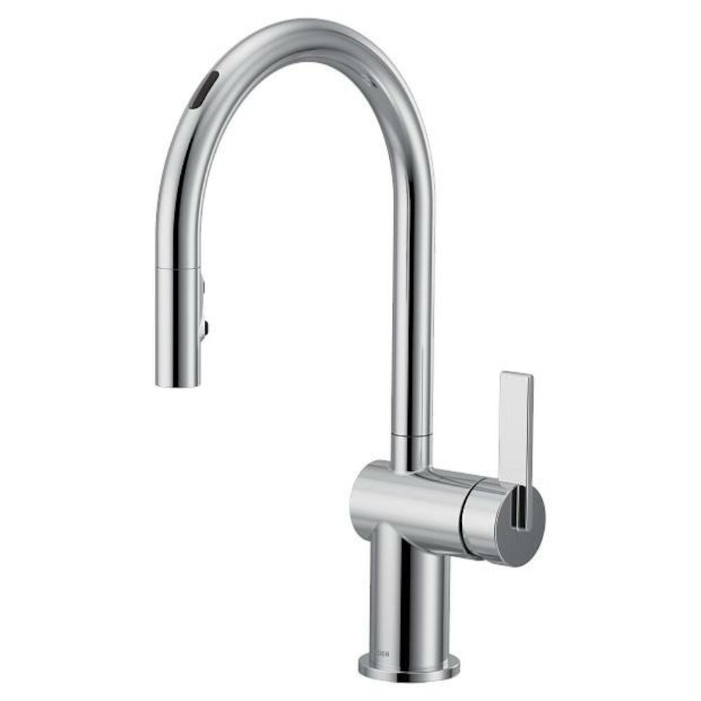 - Moen®, 7622EVC, Kitchen Faucet, Pull-Down, Series: 7622EV, Cia Collection, 1.5 gpm Flow Rate, High Arc Pull-Down Spout, 8.75 in Spout Reach, 16.86 in Spout Height, 68 in Hose, Lever Handle, 1 Handles, 1, 3 Faucet Holes, 1-1/2 in Faucet Hole, 3/8 in Connection, Compression Connection, Spray Pattern: Aerated Stream/Powerful Cleaning Rinse/Boosted Stream/Boosted Rinse, 4 Spray Functions, 2-1/2 in Maximum Deck Thickness, Sink/Countertop Mounting, 1255 Duralast™, 16-7/8 in H x 9-3/4 in W Dimensions, Metal, Chrome, Domestic, Commercial Commercial/Residential