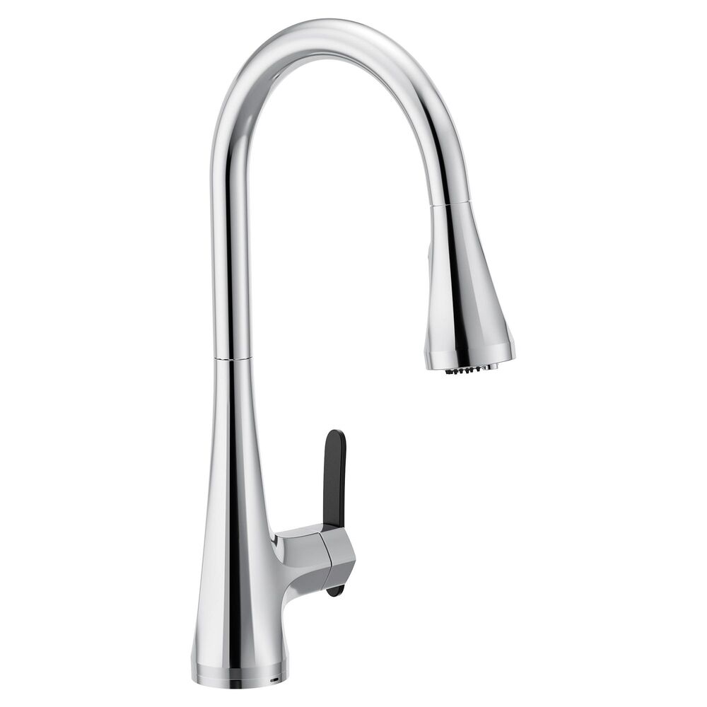 Moen®, FS7235, Faucet, Flexible, Sinema Collection, 1.5 gpm Flow Rate, High Arc Pull-Down Spout, 8.5 in Spout Reach, 17.75 in Spout Height, 68 in Hose, Lever Handle, 1 Handles, 1 Faucet Holes, 1-1/2 in Faucet Hole, 3/8 in Connection, Compression Connection, Spray Pattern: Aerated Stream/Powerful Cleaning Rinse, Function: Traditional, 3 Spray Functions, 2-1/2 in Maximum Deck Thickness, Deck Mounting, 1255™ Duralast™ Cartridge, 17.69 in H Dimensions, Metal, Chrome