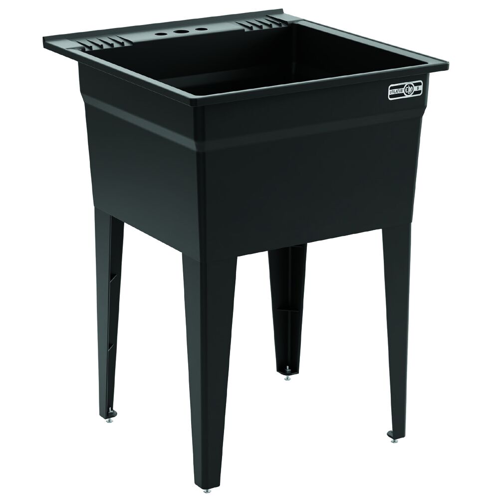 - CollectionUTILATUBFinish / ColorBlackMaterialThermoplasticMounting TypefloorOverall Dimensions23-7/8 in W x 33 in H x 24-3/4 in DCapacity18 galLeg MaterialSteelManufacturerE.L. Mustee & SonsManufacturer #8FNumber of Basins1Number of Faucet Holes3Number of Legs4